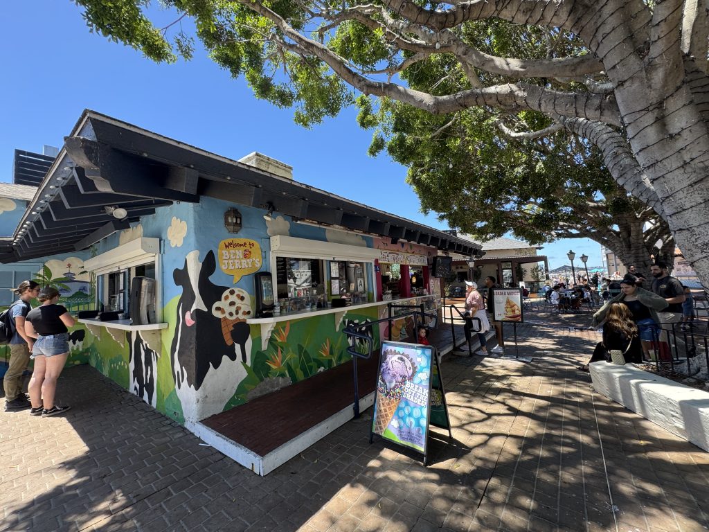 It was beer thirty already, we had a Hop Cloud IPA and a Grapefruit Solis. We sipped our beers and took in all the fun things that surrounded us. Georgia noted that Tuna Harbor Dockside Market is open from 8:30 am to 1 pm on Saturday, or until sold out, so you need to get there early. Next Saturday, we will bring a small cooler to take home fish for dinner. Georgia also noticed how close we were to the Carousel and Ben and Jerry’s. Fun activities will make the kids happy.