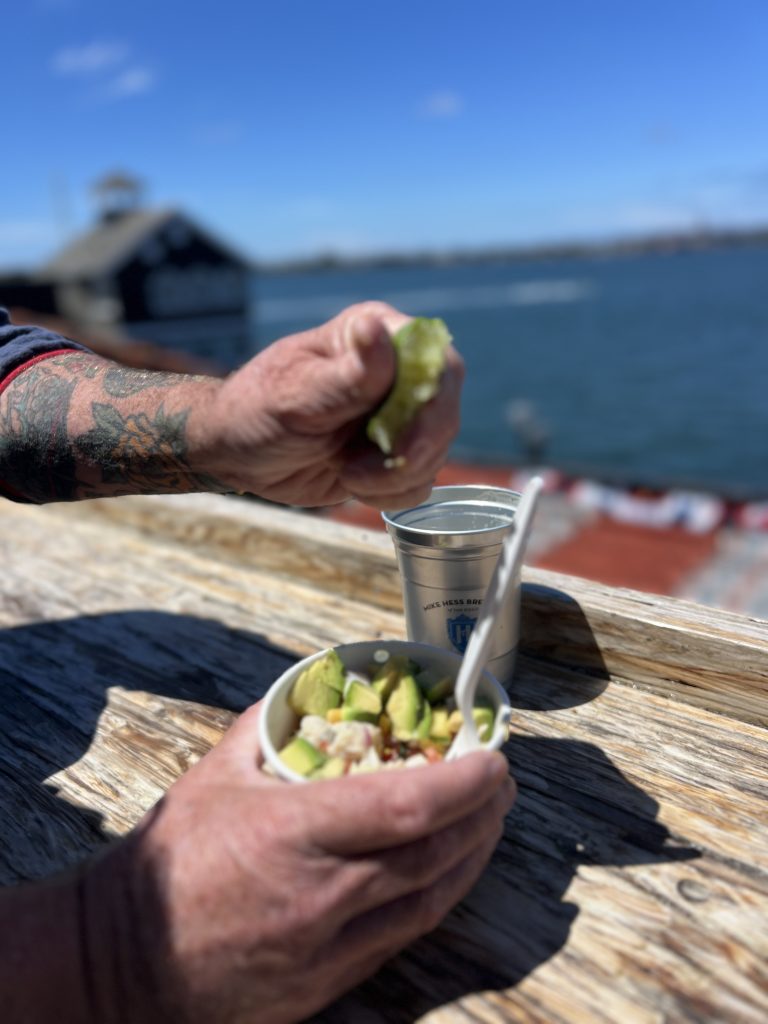 Is anyone getting hungry? My girlfriend Georgia and I made a beeline for the Hess and Quiero collaboration. We placed our order, took a number, and headed to the upper deck. The upper deck offers sweeping views of the bay and a great view of Coronado.