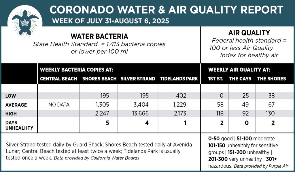 Coronado Water and Air Quality Report – July 31-Aug. 6, 2025