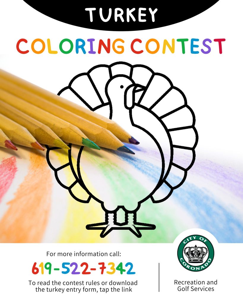 Be sure to review the contest rules using the link below and print the 2025 Turkey Coloring Contest Form to participate. For more information, please call 619-522-7342.