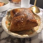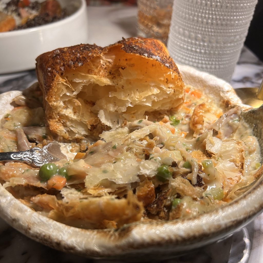 The supper menu, although brief, covered just about everything – from chicken, pork, duck, and steak, to salmon, shrimp garlic noodles, and lasagna. My deconstructed duck pot pie was a standout – generous pieces of duck meat mixed with country gravy, a mirepoix of classic celery, carrots, and green peas, with a flaky puff pastry sitting on top. It was decadent and filling, and I saved half to bring home for my lunch the next day. The Faroe Island salmon, served over black quinoa and fennel tzatziki, offered us a lighter option; the crisp skin was expertly done, and the tomato vinaigrette lent flavor, though the contrast between the warm grains and chilled sauce divided opinions at our table.