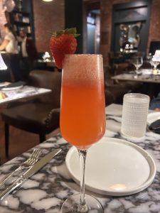 The cocktail list, in a nod to the history of the building, reads: The Spirits of Witherby: A Beverage Guide for Wayward Souls & Well-Traveled Spirits.” The creative names and detailed descriptions of the handcrafted cocktails made it hard to choose, but I settled on the Veranda Bell – muddle strawberries and elderflower liqueur jazzing up a flute of Prosecco. The 1886 Old Fashioned was my date’s choice, and it did not disappoint.