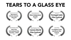“Tears to a Glass Eye” is the winner of multiple awards, including: Jury Prize at the Los Angeles Crime and Horror Film Festival; Best Mystery Film at the New York International Film Awards; Best Director, Best Film Noir, Best Mystery and Best Original Score at the Milan Independent Awards; Best Actor-Mystery Film, Best Actor- Detective Film, Best Supporting Actor and Best Director-Detective Film at the Best Actor & Director Awards–New York; Best Mystery Film, Cannes World Film Festival; and most recently, Best Director, Best Thriller and Best Original Score at the Portugal Indie Film Festival.