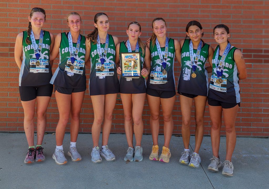 There were lots of divisions, but we decided to enter two varsity teams, girls and boys. It’s a crapshoot as to which of the other teams will be in your race, but our races were competitive. Our boys placed tenth out of 32 teams, and the girls third out of 21, to pick up one of the coveted Mt. SAC finishing plaques and medals for each of the seven team members.