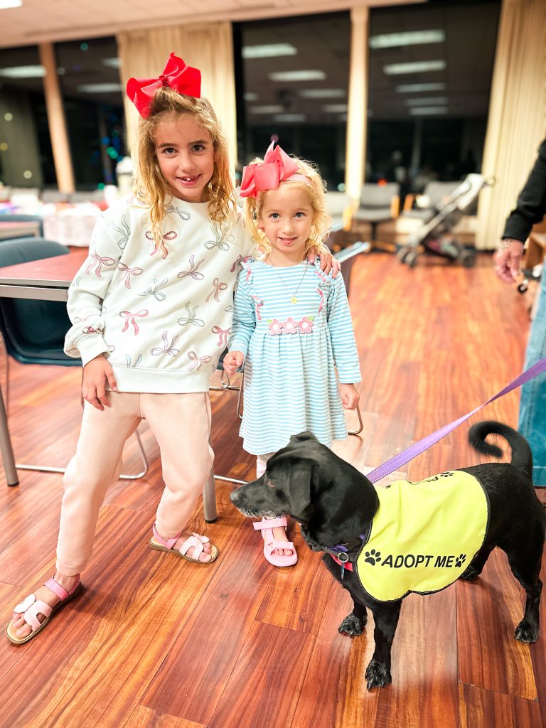 Two adoptable PAWS dogs — Callie and Maya — were at the event, serving as animal ambassadors for the shelter animals. They posed for pictures and gave snuggles and enthusiastic kisses while community members worked hard on their projects.