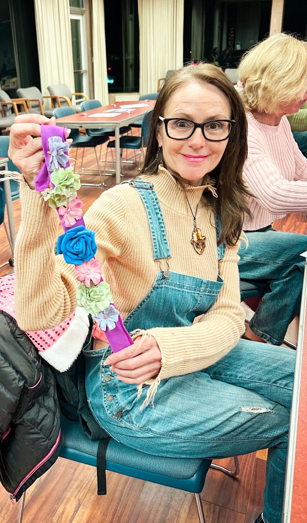 Tails wagged while busy hands crafted floral collars, leashes and bandanas at the Coronado Public Library on Monday night. It was all part of the Coronado Floral Association’s “Friends & Flowers” collaboration with PAWS.
