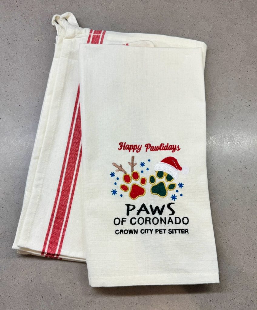 Beginning with embroidered towels, the product list now includes hats, shirts, and more. “I did towels because I needed to get out there and have people know me. I made nice Coronado zip code towels. Then, I went into local businesses and sold myself. Maggie suggested putting the graduation year on them for kids for 20 years from now. So that’s what we did.”