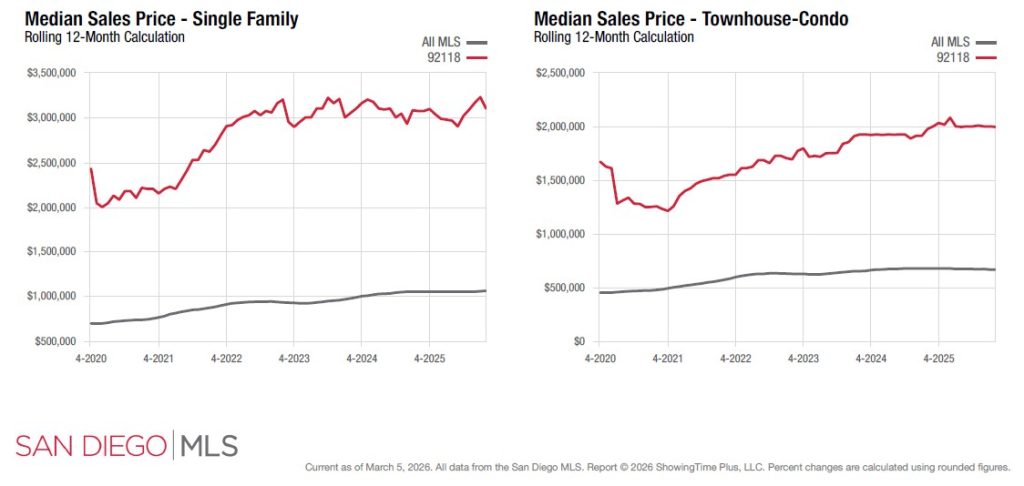 The Coronado real estate market update is sponsored by Coronado Shores Co. To view Coronado homes for sale, for rent, or for property management services, please visit Coronado Shores Co.