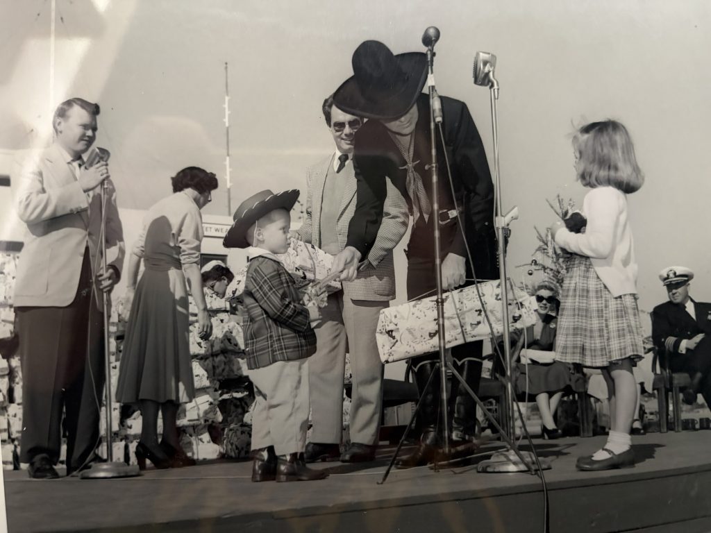 “He was a curious child,” said Julia. “He liked taking apart gadgets in the house so he could learn how they work and put them back together.” Growing up in Coronado, Richard often told Julia stories of his childhood. “He attended a military benefit event for children who had lost a parent, and TV cowboy personality Hopalong Cassidy was there. There’s a photo of my dad, all of two or three years old, wearing a little holster and a cowboy hat, and Hopalong Cassidy is right there. He let him hold his pistol.”