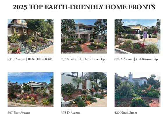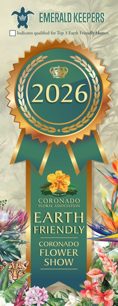 Coronado residents are preparing their gardens for the Coronado Floral Association’s home front judging taking place March 27-29. While the Floral Association celebrates colorful blooms and manicured yards with blue, red, and yellow ribbons, Emerald Keepers recognizes earthy-friendly home fronts with green ribbons.
