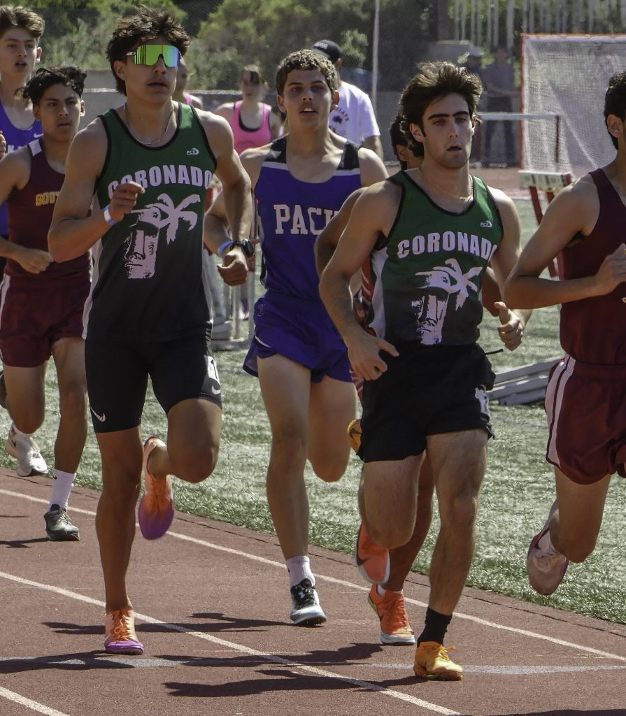 Islander distance athletes swept the top two places in the “Metric Mile” (1600-meter Run). Seniors Nathan Ayan and Vincent Russo ran PB times of 4:32.34 and 4:33.10, respectively, to finish first and second. Those times rank them third and fourth, respectively, in the Central League. They also rank 27th and 34th in the San Diego CIF section (985 athletes with times recorded thus far).