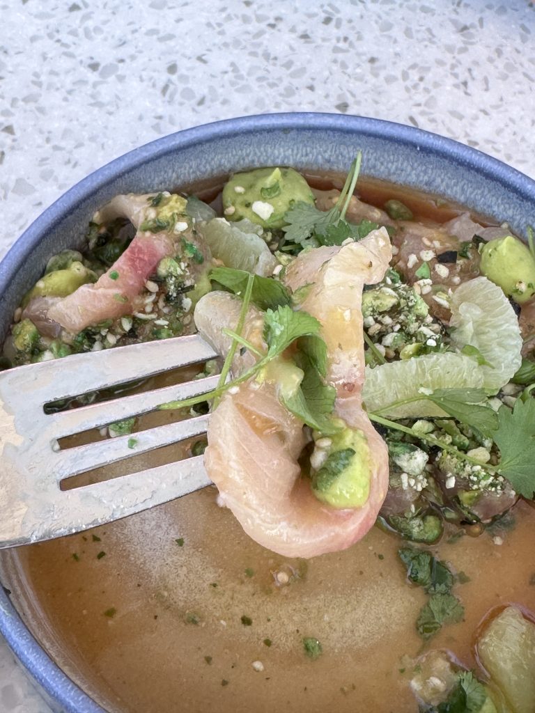 Another theory for La Jolla’s name is that it is a misspelling of the Spanish term la joya, meaning “the jewel.” Both resonate with me. The night my girlfriend Georgia and I found ourselves at George’s, the jewel lived up to its name. There is an upcharge to get a table on the glass, but I strongly recommend it. Our 6:30 reservation meant we were primed for a front-row seat to the light show, which didn’t disappoint. The table of seven next to us was from Michigan, and the view blew their minds. The reaction from that table made me realize how much I had taken this view for granted.