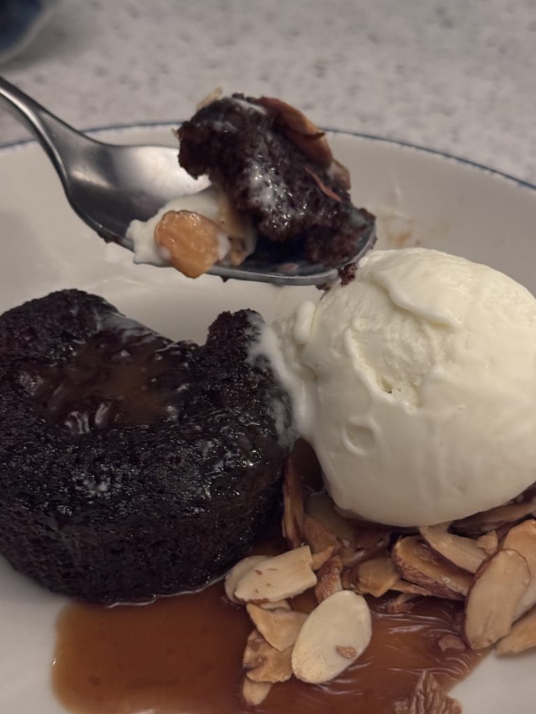 As usual, we were too full for dessert, but that didn’t stop us from ordering it anyway. We opted for the Sticky Toffee Cake: caramel sauce, almonds, topped with bay leaf and olive oil ice cream. We are all so blessed to live where we do in Coronado, but you should take a Tylenol now and again, let that island fever break, and head up to La Jolla and enjoy all that San Diego has to offer. Pay the extra to sit on the glass. Slowly sip a cocktail and take in the sunset. Eat too much, and enjoy the ocean breeze. What a meal, what a natural beauty, what an experience. Let me know if you see the green flash.