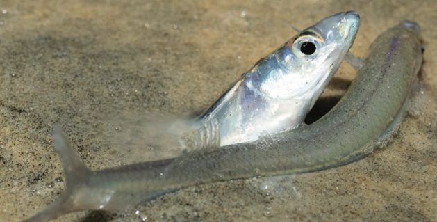High tides carry the fish ashore where they squirm and wriggle onto the beach propelled by their tails. The females dig until they are half buried with just their head sticking out and deposit their eggs into the sand. The males swiftly wrap themselves around the females to fertilize the eggs. The process is quick — as fast as 30 seconds — as the fish must return to the ocean before the tide recedes.