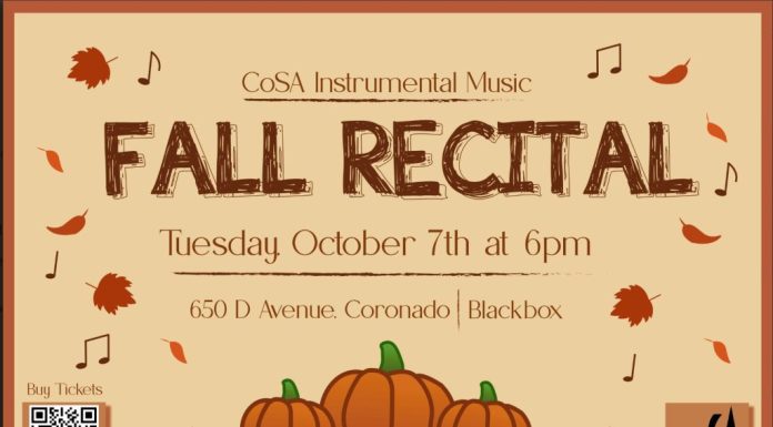 Students in the Coronado School of the Arts Instrumental Music Conservatory will perform their fall recital on Tuesday, Oct. 7 at 6 pm in the Black Box Theatre at Coronado High School. The recital will feature a string quintet,...